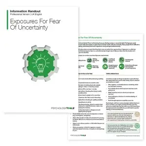 La peur de l'incertitude est généralement associée à de nombreuses difficultés psychologiques, notamment le trouble d'anxiété généralisée (TAG), le trouble obsessionnel compulsif (TOC), la dépression et les troubles de l'alimentation. L’exposition est un traitement efficace contre la peur ou « l’intolérance » à l’incertitude, généralement précédée par le développement d’une échelle de peur ou d’une hiérarchie d’exposition. Les clients ont parfois du mal à développer des tâches d’exposition appropriées ou à identifier des « étapes » gérables entre les expériences comportementales.