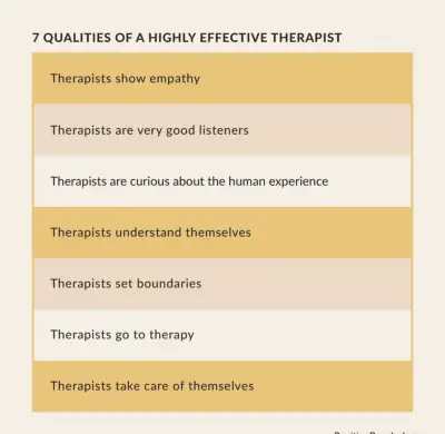 Qu’est-ce qui fait un bon thérapeute ? Nous pensons qu'il existe des qualités de base spécifiques et nécessaires que les thérapeutes doivent maîtriser pour aider leurs clients de manière significative, telles que les sept qualités suivantes :